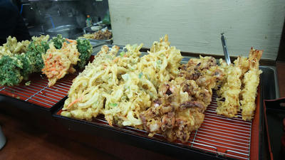 かき揚げ、ゴボ天、春菊天、ゲソ天。
