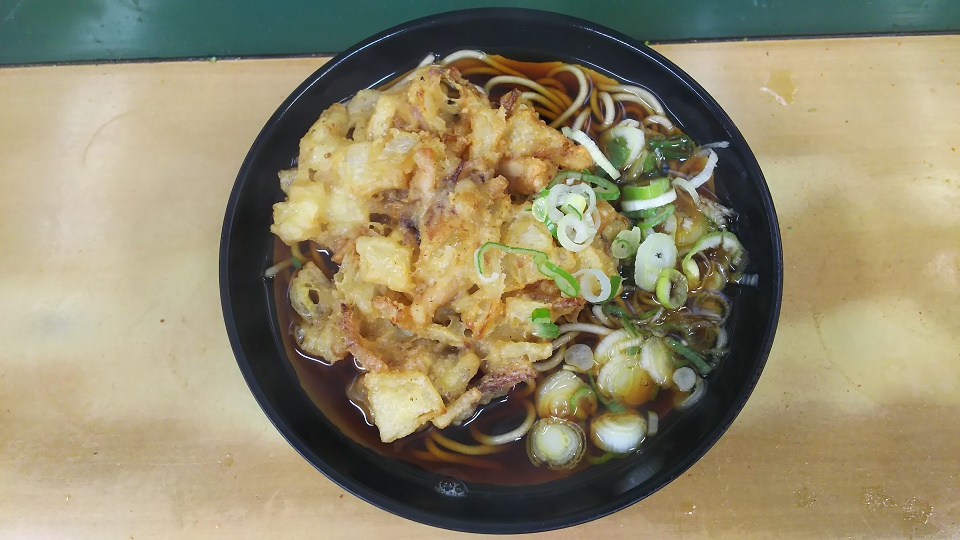 出汁と麺がいい感じで絡み合う。かき揚げは薄く平べったい。