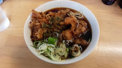 「きのこそば」にトッピング「ゲソ天」で550円。