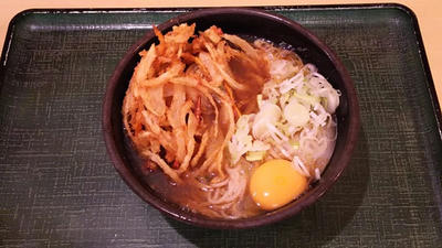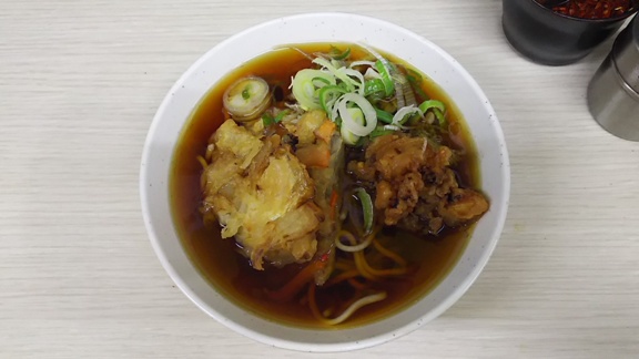 出汁は薄目だが揚げカス、麺と馴染んできたら旨い。