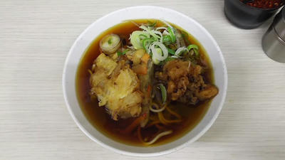 「かき揚げそば」360円。