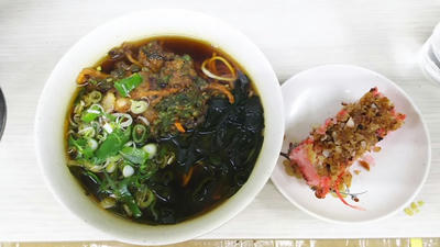 「ししゃも&なす天そば」420円。