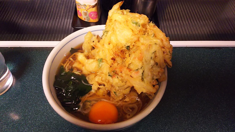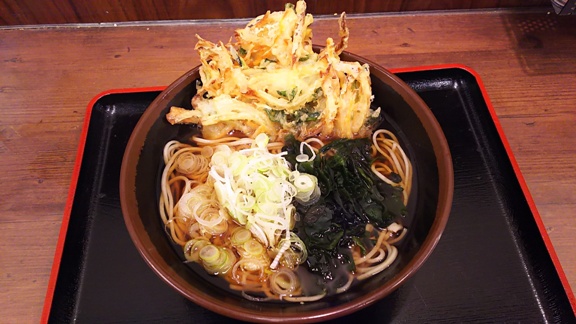 300円と80円の食券を買って「かき揚げそば」を頼む。