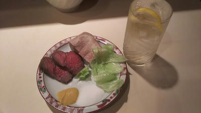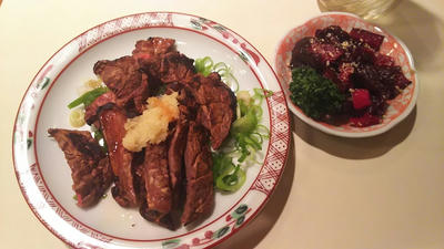 「ネックスモーク&コールタン(ハーフ&ハーフ)」400円⇒かなり旨い!コールタン絶妙に柔らかい。スモークはほんのり薫るが中はレア。旨い!