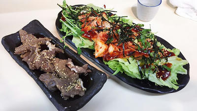 これは餃子、野菜炒め(小)、ビール中瓶。