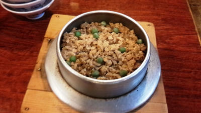 あとはアテを少し頼んで「焼鳥盛合せ」「鶏釜めし」。